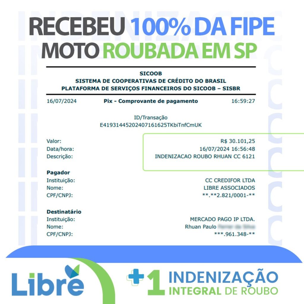 Caso seu veículo seja roubado ou furtado, você será ressarcido em até 100% do valor da tabela FIPE.