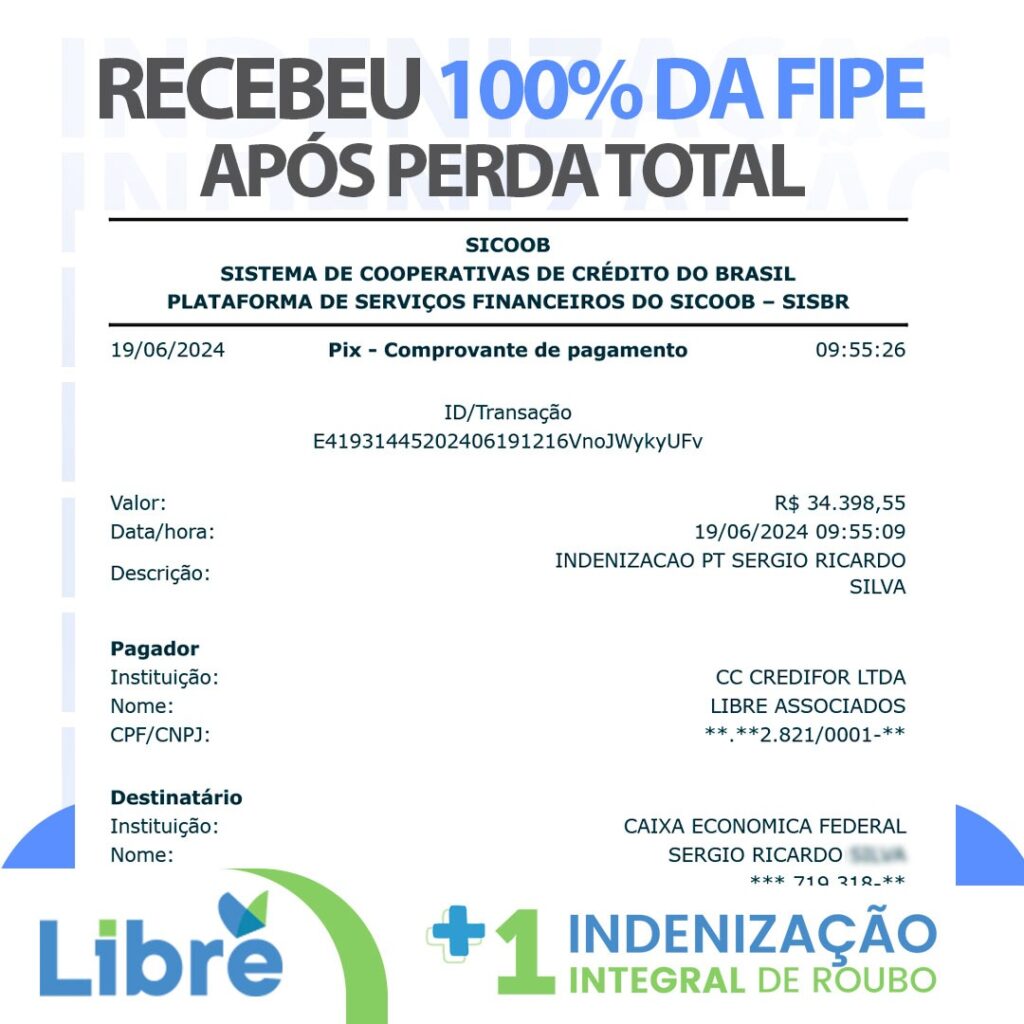 Em caso de roubo ou furto do seu veículo, você será ressarcido em até 100% do valor da tabela FIPE.
