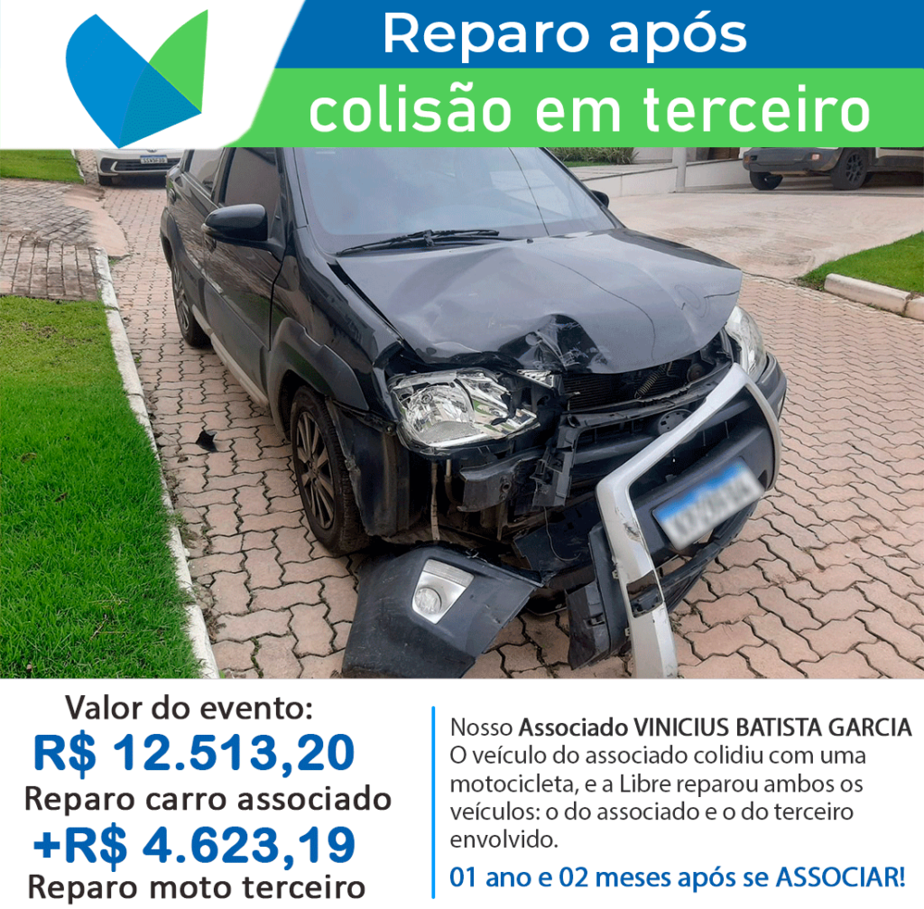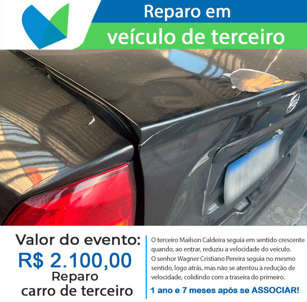 Se você se envolver em um acidente com outro veículo, o conserto é por nossa conta.
